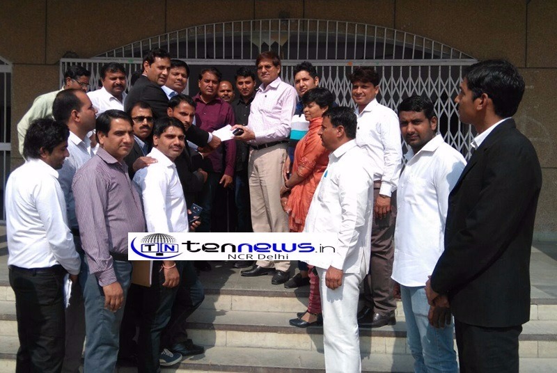 हाईकोर्ट की बैंच की मांग को लेकर ग्रेनो कलेक्ट्रेट में एसडीएम सुभाष यादव को मुख्यमंत्री के नाम ज्ञापन सौंपते वकील।