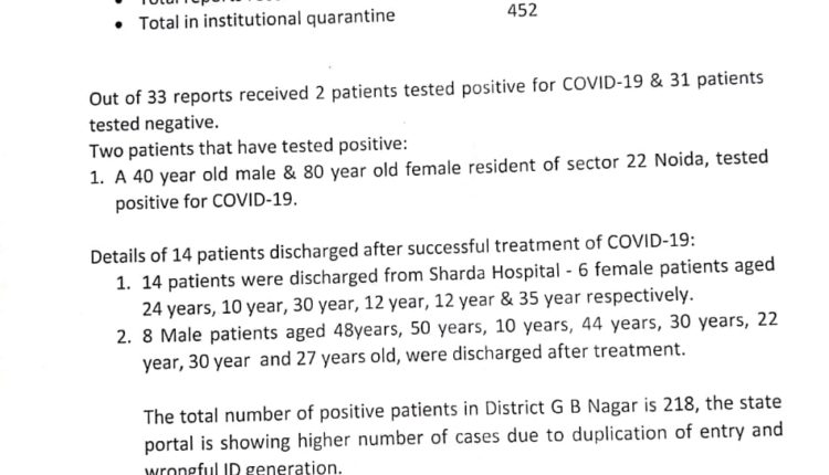 BREAKING : नोएडा में 2 लोग फिर मिले कोरोना पॉजिटिव