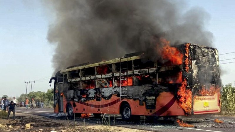 Rajasthan (15/10/2025): 20 passengers were burnt alive and 16 were critically injured when a private bus travelling from Jaisalmer to Jodhpur caught fire on Tuesday.