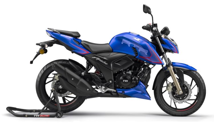 The new TVS Apache RTR 200 4V motorcycle with dual-channel ABS will be available starting today in three colours namely, Gloss Black, Pearl White and the newly launched Matte Blue, inspired by the TVS OMC race bike, and is priced at ₹ 1,31,050 (ex-showroom Delhi).