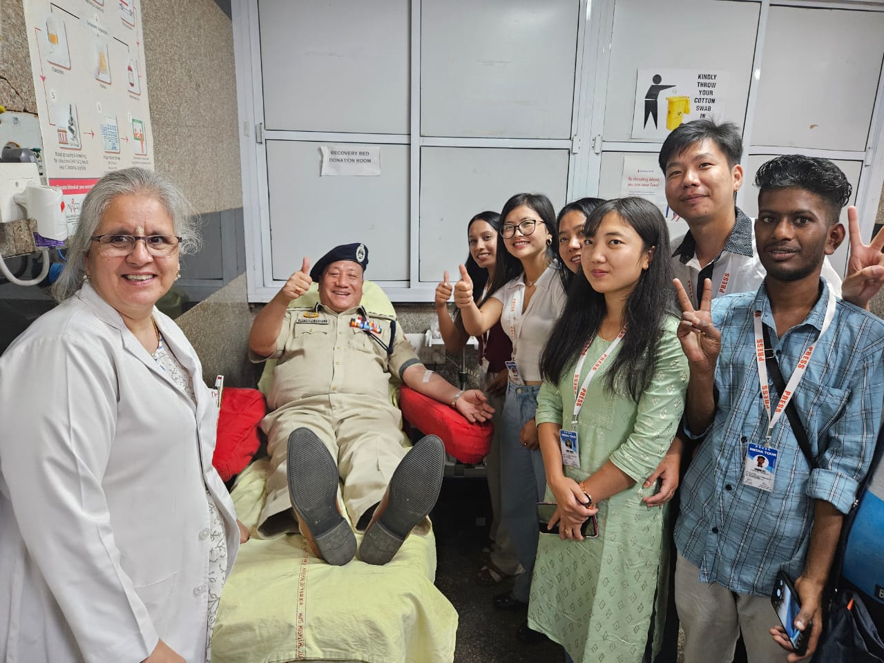 The Media Delegation from Ziro was inspired by Robin Hibu to donate blood for the sake of humanity at the Blood Centre of AIIMS. Like a true leader who leads by an example, Robin Hibu too donated blood on the occasion. 19 year old B.Tech student Kabir Sharma from Delhi too donated blood for his North Eastern brothers and sisters. The Media Delegation felt motivated to meet Dr Poonam Coshic (Chief Medical Officer), Anju A.S. M.S.W.O. & Dr. Hem Chandra Pandey (H.O.D.), Blood Centre, (Department of Transfusion Medicine), AIIMS.