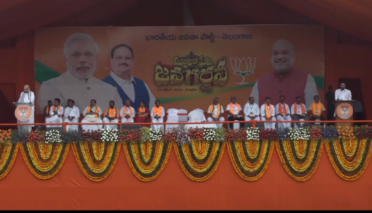 He slammed both the BRS and Congress for promoting dynastic politics. “Target of both parties is the same. KCR wants to make KTR the chief minister. Sonia Gandhi wants to make Rahul Gandhi the Prime Minister,” he said.