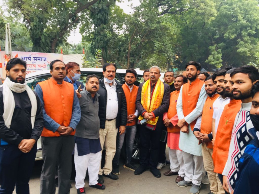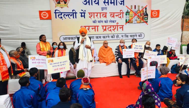 New Delhi (28/12/2021): दिल्ली के आर्य प्रतिनिधि सभा द्वारा 28 दिसंबर 2021 को जंतर मंतर पर शराबबंदी के लिए कोरोना की गाइड लाइन का ध्यान रखते हुए सांकेतिक धरना प्रदर्शन किया गया। इस अवसर पर दिल्ली आर्य प्रतिनिधि सभा के प्रधान, महामंत्री एवं समस्त अधिकारी, आर्य केंद्रीय सभा दिल्ली राज्य के महामंत्री सतीश चड्ढा, अखिल भारतीय दयानंद सेवाश्रम संघ के महामंत्री जोगेंद्र खट्टर, आर्य वीर दल दिल्ली प्रदेश के अधिकारी, प्रांतीय आर्य महिला सभा के अधिकारी एवं अनेक अन्य आर्य समाजों के अधिकारी, कार्यकर्ता और सदस्य सम्मिलित हुए।