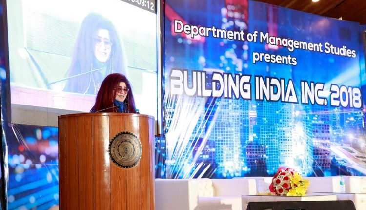 Global Pioneer of Ayurveda Shahnaz Husain was recently invited as the keynote speaker at the IIT Business Summit titled “Building India Inc. 2018” on 7th April’2018. An initiative of IIT Delhi’s Department of Management Studies (DMS), the lecture series by distinguished personalities has been playing a pivotal role in inspiring post-graduate management students aspiring to be future entrepreneurs and leaders of the country. She was given a rousing reception by the students and the faculty at the entry gate, and greeted with a bouquet of flowers.