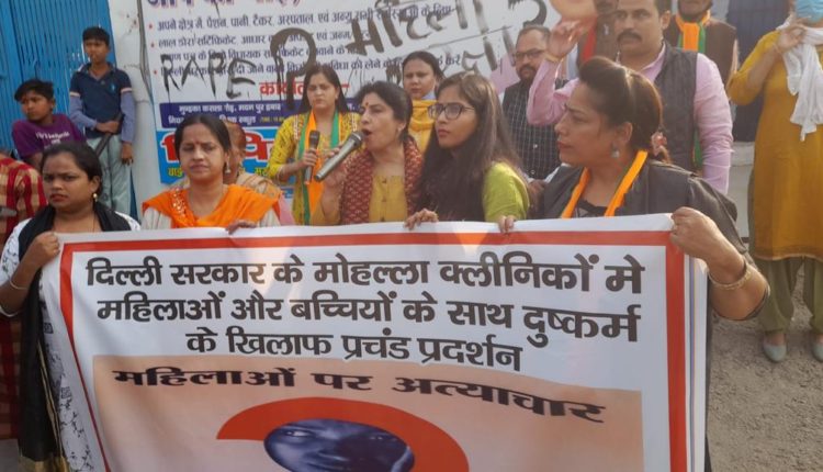 New Delhi: बीजेपी प्रदेश महिला मोर्चा ने अध्यक्षा योगिता सिंह के नेतृत्व में आज दिल्ली में एक 12 साल की दलित बच्ची के साथ मोहल्ला क्लिनिक के डॉक्टर द्वारा किए गए कथित दुर्व्यवहार को लेकर केजरीवाल सरकार के खिलाफ जोरदार विरोध प्रदर्शन किया और बच्ची को न्याय देने की मांग की। प्रदर्शन में शामिल योगिता सिंह ने कहा कि महिला सुरक्षा की बात करने वाले अरविंद केजरीवाल को जवाब देना चाहिए क्योंकि आज उनके ही मोहल्ला क्लिनिक के डॉक्टर ने शर्मसार करने वाली घटना को अंजाम दिया है।