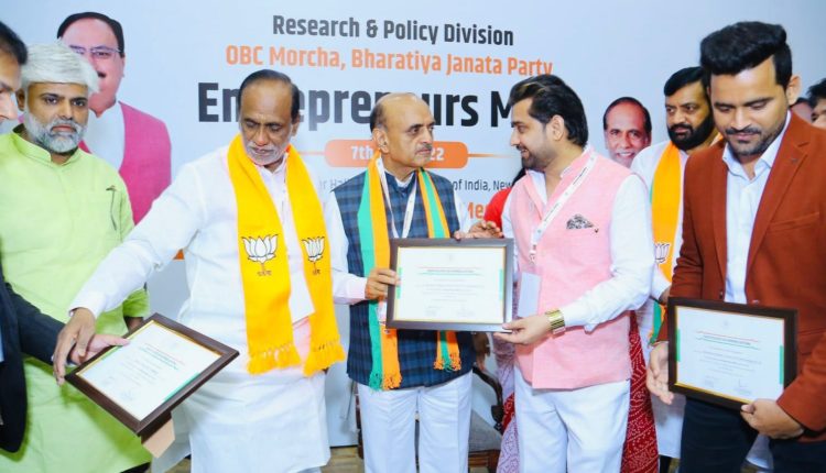 New Delhi (09/05/2022): With the objective of igniting the entrepreneurship spirit among the youths of OBCs and to highlight the various measures taken by the BJP government particularly in the area of economic and entrepreneurship field for the OBCs , research and policy division of BJP OBC Morcha organised a meet at constitution club of India on 7 May 2022. This occasion was graced by the eminent presence of Central minister of state for finance Dr Bhagwat Karad as chief guest and the BJP General Secretary Arun Singh as special Guest and Dr K Laxman , National President OBC Morcha, BJP with Prof Pankaj Choudhary, National Incharge of Research and Policy Division of OBC Morcha. Entrepreneur Meet was attended by more than 20 states entrepreneurs and CEOs & MD.