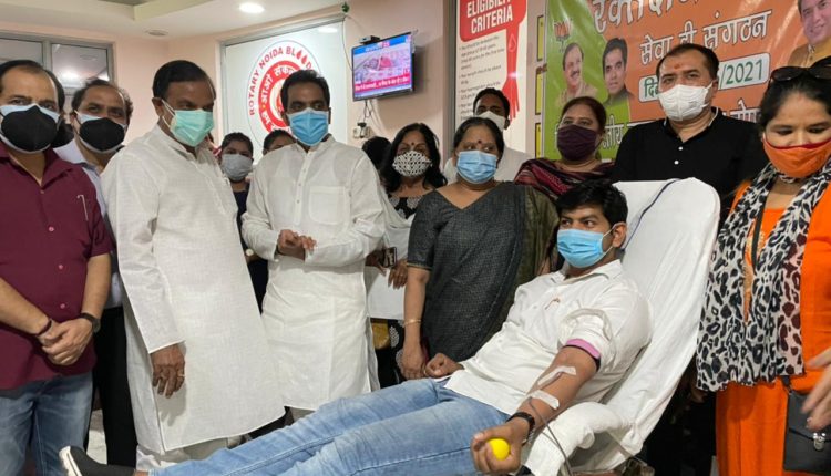 नोएडा : केंद्र में 7 साल पूरे होने पर भाजपा ने लगाया ब्लड कैम्प, डॉ महेश शर्मा और पंकज सिंह ने किया उद्घाटन