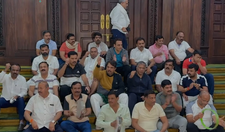 The legislators held posters inside the Assembly demanding the resignation of Excise Minister R.B. Thimmapur, alleging a Rs 6,000-crore scam in the Excise Department. Later, they gathered to sing devotional songs and then slept on the floor of the House. Photos and videos of BJP and JD(S) leaders sleeping on the floor went viral on social media.