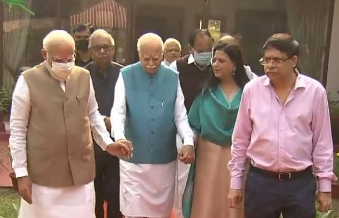 बीजेपी के कद्दावर नेता लाल कृष्ण आडवाणी आज 94 साल के हो गए हैं और उनके जन्मदिन के मौके पर प्रधानमंत्री नरेंद्र मोदी ने उनको खास अंदाज में बधाई दी। पीएम मोदी उपराष्ट्रपति वेंकैया नायडू, रक्षा मंत्री राजनाथ सिंह, केंद्रीय गृह मंत्री अमित शाह और बीजेपी अध्यक्ष जेपी नड्डा के साथ पृथ्वीराज रोड स्थित लाल कृष्ण आडवाणी के घर पहुंचे और उन्हें जन्मदिन की शुभकामनाएं दीं।