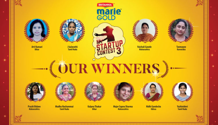 16 March 2022: With a vision to fuel the entrepreneurial aspirations of India’s homemakers, Britannia Industries, India’s No.1 Bakery Foods Company announced the top 10 winners of its renowned Marie Gold My Startup Initiative season 3. Under this initiative, the 10 winners were felicitated and awarded INR 10 Lakhs each to kick-start their business ventures. Gracing the felicitation ceremony were Mr. Amit Doshi Chief Marketing Officer, Britannia Industries Ltd and Ms. Sairee Chahal Founder, SHEROES & Mahila Money.
