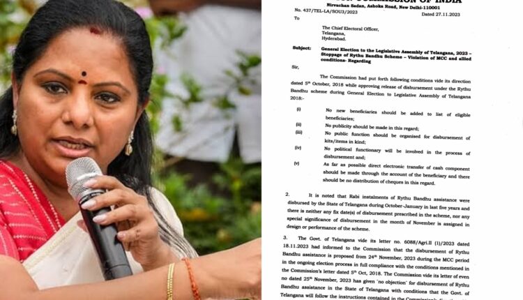 The ECI on Monday withdrew the permission citing violation of the model code of conduct and allied conditions. The poll panel took cognizance of the state by Finance Minister and BRS star campaigner T. Harish Rao that amount under Rythu Bandhu will be credited in the bank accounts of farmers from November 28.