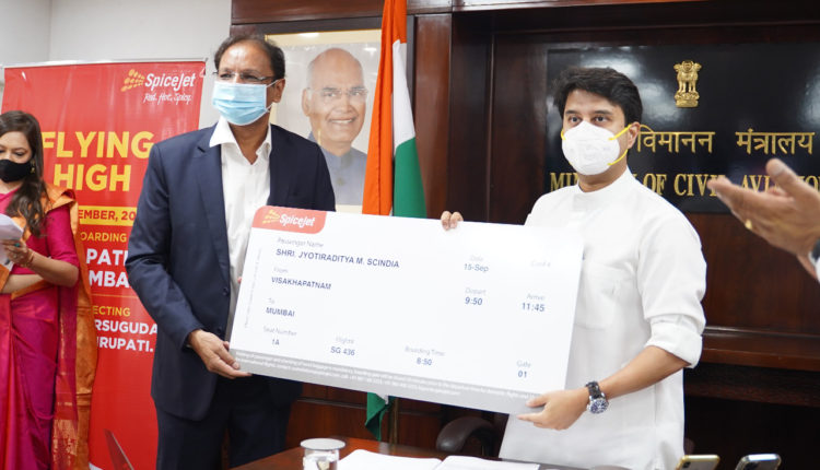 Union Minister of Civil Aviation, Jyotiraditya M. Scindia, MoS, Civil Aviation, General Dr. V K Singh (Retd.) along with Secretary, Ministry of Civil Aviation (MoCA), Pradeep Kharola virtually flagged off the first SpiceJet flight from Visakhapatnam (Andhra Pradesh) to Mumbai (Maharashtra). Vasupalli Ganesh Kumar, MLA South Assembly Constituency (Telugu Desam) joined the event virtually from Vishakhapatnam airport.