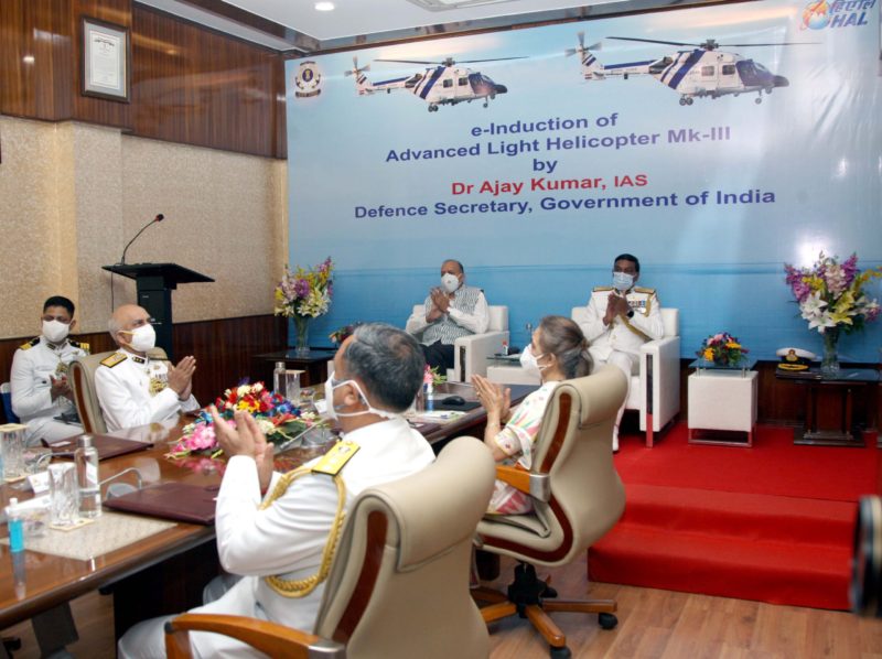 In line with Atmanirbhar Bharat vision of Prime Minister Narendra Modi, Defence Secretary Dr Ajay Kumar today inducted Advanced Light Helicopters (ALH) Mk-III in Indian Coast Guard (ICG). The state-of-the-art helicopters are indigenously designed and manufactured by Hindustan Aeronautics Limited (HAL), Bengaluru.