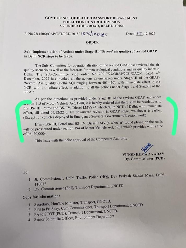 New Delhi Delhi bans BS4 diesel, BS3 petrol vehicles till 9th Dec to combat air pollution Ten News Network On Dec 6, 2022 Share New Delhi (06/12/2022): Delhi bans BS4 diesel, BS3 petrol vehicles till 9th Dec to combat air pollution #Air PollutionDelhi.Vehicles Share FacebookTwitterGoogle+ReddItWhatsAppPinterestEmail