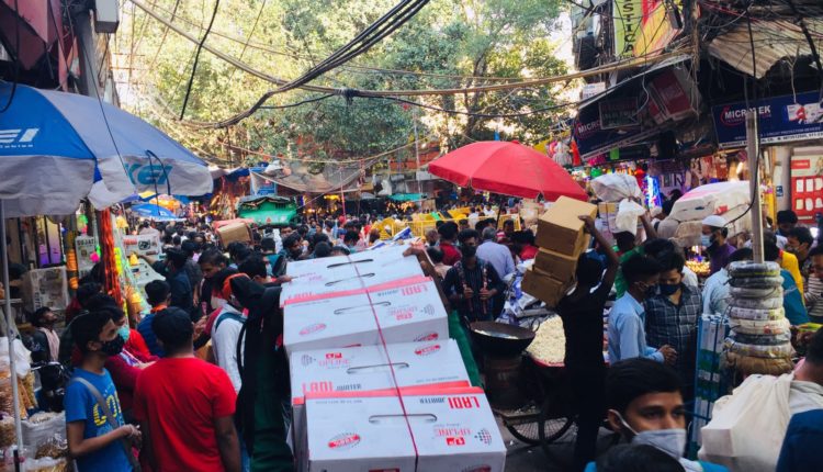 केंद्र और राज्य सरकार की तमाम कोशिशों के बाद भी देश की राजधानी दिल्ली में कोरोना गाइडलाइंस का पालन नहीं किया जा रहा है। दिवाली का त्योहार नज़दीक है और इसे लेकर खरीदारी के लिए दिल्ली के चांदनी चौक इलाके में लोगों की भीड़ उमड़ रही है । इस दौरान लोग सोशल डिस्टेंसिंग की जमकर धज्जियां उड़ा रहे है । ऐसे ही हालात रहे तो आने वाले वक्त में दिल्ली की स्थिति खराब हो सकती है।