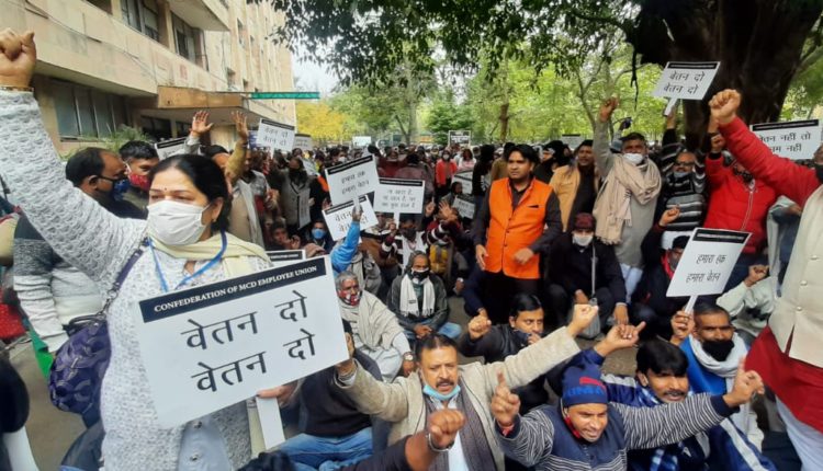 रुके हुए वेतन को लेकर कर्मचारियों ने एमसीडी के खिलाफ किया प्रदर्शन , कहा – वेतन नही तो जारी रहेगी हड़ताल
