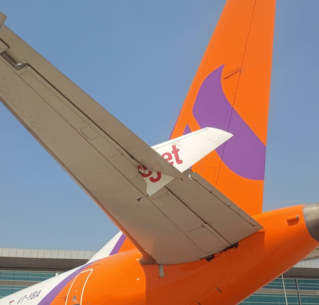 During taxiing, the right winglet of the SpiceJet aircraft came into contact with the left horizontal stabiliser of the Akasa aircraft.