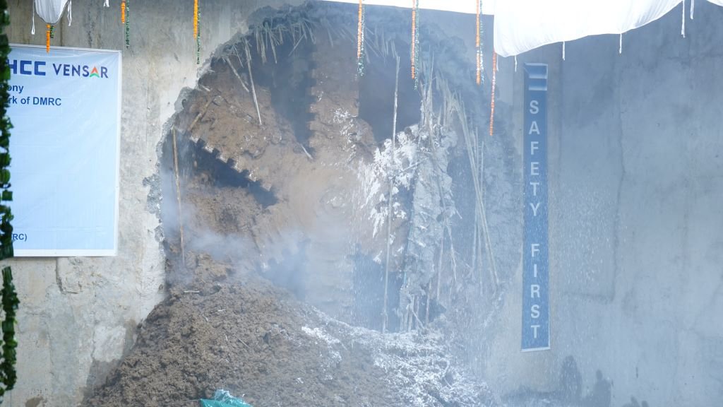 A Tunnel Boring Machine (TBM) broke through this morning at Krishna Park Extension after boring a 1.4-kilometre long tunnel in the presence of the Secretary, Ministry of Housing and Urban Affairs, Government of India & Chairman, DMRC Manoj Joshi, Managing Director, DMRC, Vikas Kumar and other senior officials.