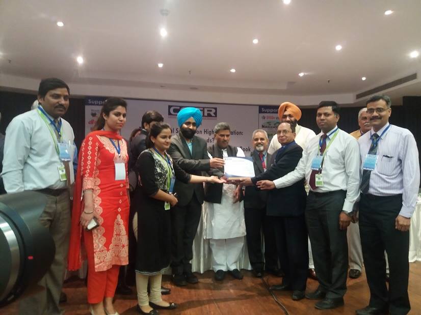 The award was handed over by AICTE Director Dr.M.S.Manna and Hon’ble M.P. Dr.Arun Kumar at India International Center, New Delhi on 18th March 2016 during a seminar organised by Centre for Education Growth & Research (www.cegr.in).