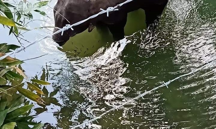 After giving her a bath at the Tunga river, the staff had left her to graze on the camp’s premises.