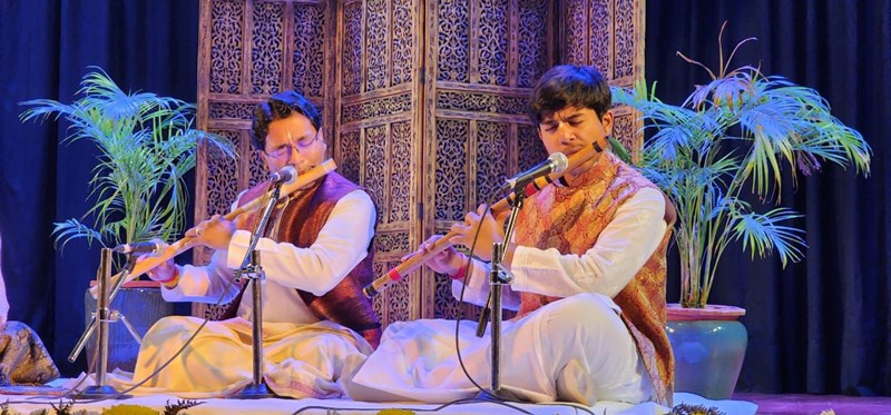 The recital, held on Thursday evening, featured Banaudha—an eminent flutist and music composer from the illustrious Varanasi Gharana—joined on stage by his son and disciple Sanskar Prasad Banaudha, who performed alongside him on the flute. The rhythmic accompaniment was provided by noted tabla artist Daksh Makwana, adding dynamic resonance to the presentation.