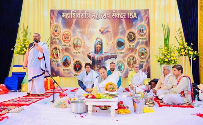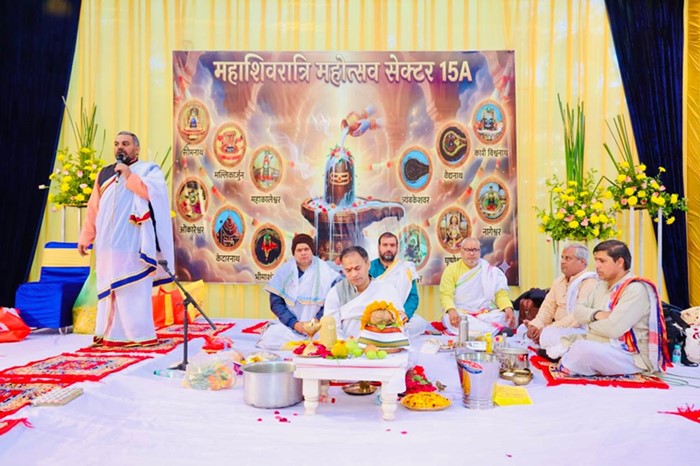 First-Ever Mass Rudrabhishek on Mahashivratri Draws Hundreds of Devotees in Sector 15A