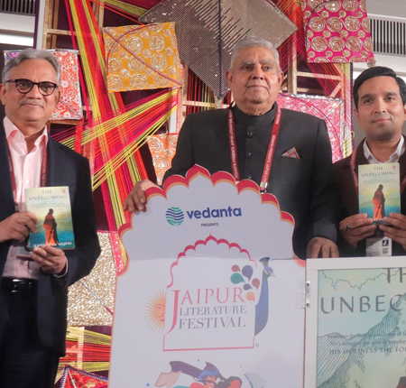 Jaipur, Jan 18 (IANS) Former Vice President Jagdeep Dhankhar on Sunday attended the Jaipur Literature Festival (JLF), where he formally launched ‘The Unbecoming’, a book authored by his son-in-law, lawyer Kartikeya Vajpai.
