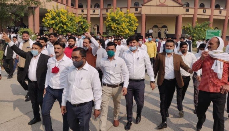 ग्रेटर नोएडा : बदसलूकी से गुस्साए वकीलों ने किया हाईवोल्टेज हंगामा, कोर्ट के गेट पर जडा ताला