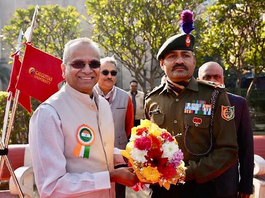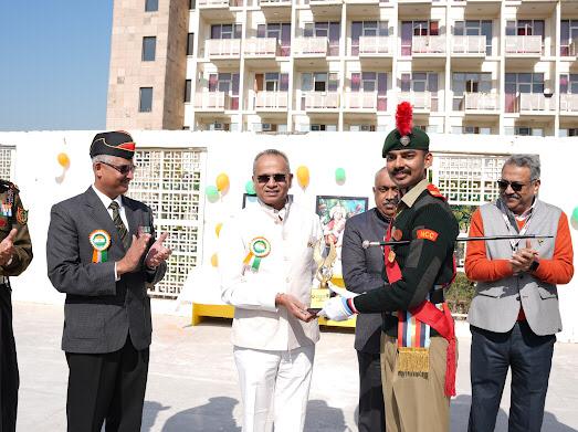Dr. K. Mallikarjun Babu, Vice Chancellor of Galgotias University, served as the chief guest and inaugurated the ceremony by hoisting the national flag. The event was further graced by retired Commanding Officer Colonel Saurat Singh of the 31st UP Girls Battalion and Sub Major Jagram Singh SM of the 40th UP NCC Battalion as special guests.