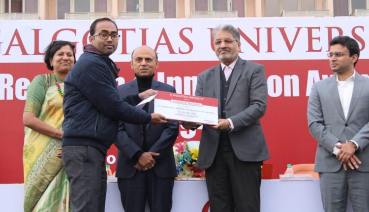 गलगोटिया विश्वविद्यालय ग्रेटर नोएडा के तत्वाधान में हाल ही में प्रथम रिसर्च एण्ड इनोवेशन अवार्ड 2019 का आयोजन किया गया। जिसमें 35 असिस्टैंट प्रोफेसर 34 एसोसिएट प्रोफेसर 21 प्रोफेसर सहित कुल 90 शिक्षकों को नगद राशी और प्रस्सति पत्र प्रदान कर सम्मानित किया गया।
