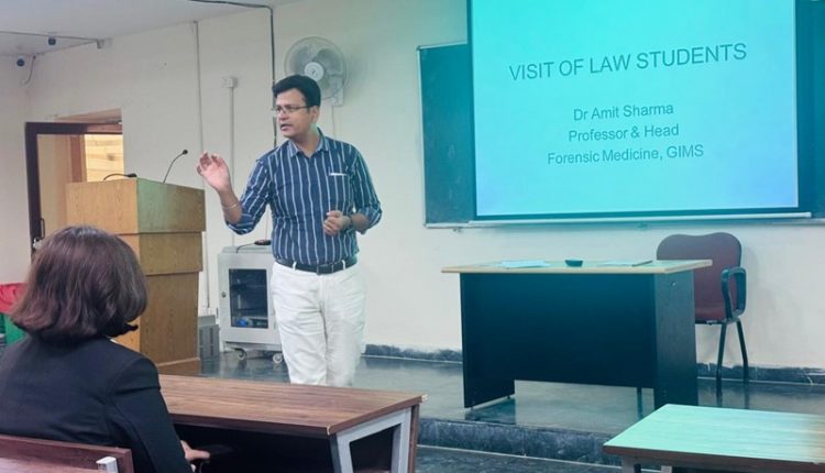 GREATER NOIDA News (14/11/2025): The Department of Forensic Medicine at the Government Institute of Medical Sciences (GIMS), Greater Noida, organised an educational visit for students from the JIMS EMTC Department of Law on 14 November 2025. The initiative aimed to provide budding law professionals with first-hand exposure to forensic science, crime-scene protocols, and medico-legal procedures.