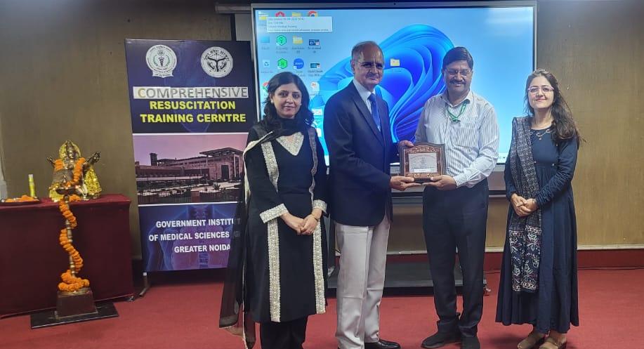 On the occasion, Rakesh Gupta, Director of Government Institute of Medical Sciences, felicitated Dr. Baljeet Singh in recognition of his significant contribution to promoting training and awareness in emergency and critical care management.