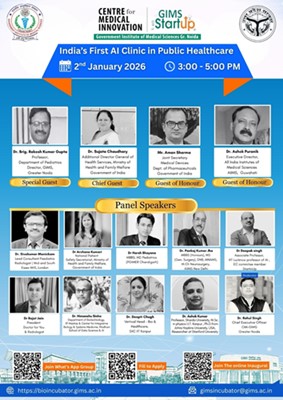 GREATER NOIDA News (02/01/2026): The Government Institute of Medical Sciences (GIMS), Greater Noida, is set to make a national first by launching an Artificial Intelligence (AI) Clinic within a government hospital. The initiative, established through the institute’s Centre for Medical Innovation (CMI), will be unveiled during an online national event and is aimed at accelerating the safe, ethical, and practical adoption of AI in public healthcare.