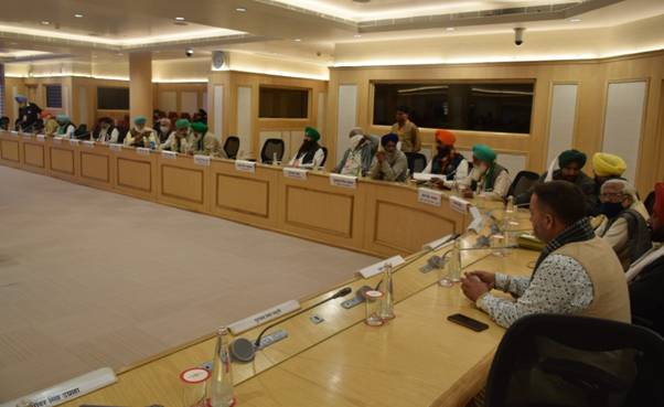 Narendra Singh Tomar, Minister of Agriculture & Farmers Welfare, Piyush Goyal, Minister of Railways & Commerce and Som Prakash, Minister of State, Ministry of Commerce and Industries interacted with the representatives of Farmers Organizations of Punjab on 1st December, 2020 in Vigyan Bhavan, New Delhi. The Ministers again explained the benefits of Farm Reform Acts to the representatives of the Farmers’ Unions. Various issues related to Farm Reform Acts were discussed at length and talks were held in a cordial atmosphere.