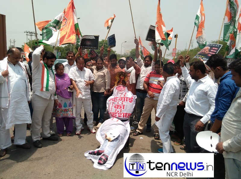 आज युवा कांग्रेस गौतमबुद्ध नगर के जिला अध्यक्ष दीपक चोटीवाला के नेतृत्व में आये दिन बढ़ रहे पेट्रोलियम पदार्थों के दामों कारण हो रही महँगाईए जिसके कारण आम आदमी त्राहिमाम . त्राहिमाम करने को मजबूर हो गया हैए के खिलाफ देश के प्रधानमंत्री नरेन्द्र मोदी को महँगाई का शहंशाह घोषित करके विरोध प्रदर्शन करते हुए ग्रेटर नोएडा के परी चौक पर प्रधानमंत्री का पुतला जलाया गया।