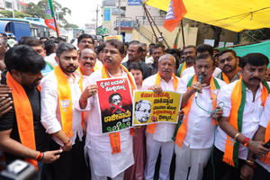“If the Congress continues to ruin the state, Hindus will not allow this to continue. Amend the law immediately. The state government must immediately bring changes to the Waqf Act while Siddaramaiah should resign as he has brought tears to the eyes of farmers by seizing their lands,” the LoP said while addressing a BJP protest rally against the Waqf Board and the state government in K.R. Puram locality in Bengaluru.