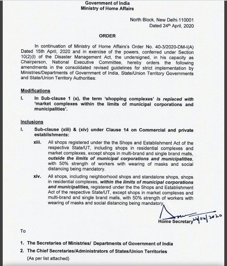 Home Ministry permits to open shops registered under act during Lockdowm – tap for copy of the order
