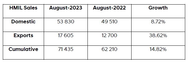 Gurugram, September 01, 2023: Hyundai Motor India Ltd. (HMIL), India’s first smart mobility solutions provider and the largest exporter since inception, registered a total sales of 71 435 units in August 2023. Total sales for the month of August 2023 include domestic sales of 53 830 units and export of 17 605 units.