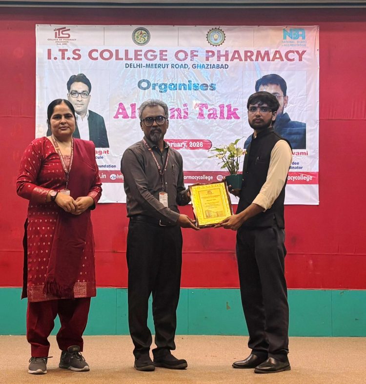 I.T.S College of Pharmacy conducted an Alumni cum Entrepreneur Talk for students on 21 February 2026, intending to connect learners with experienced professionals and offer insights into the practical aspects of the pharmaceutical field. The session served as an interactive platform where students could learn from the professional journeys and experiences of distinguished alumni. On this occasion, Mr. Arpit Chadha, Vice Chairman of I.T.S – The Education Group, highlighted the vital role of alumni & entrepreneurs in strengthening the academic community. He emphasized that alumni serve as mentors, role models, and valuable links between the institution and the professional world, inspiring students to learn from their experiences and achievements.