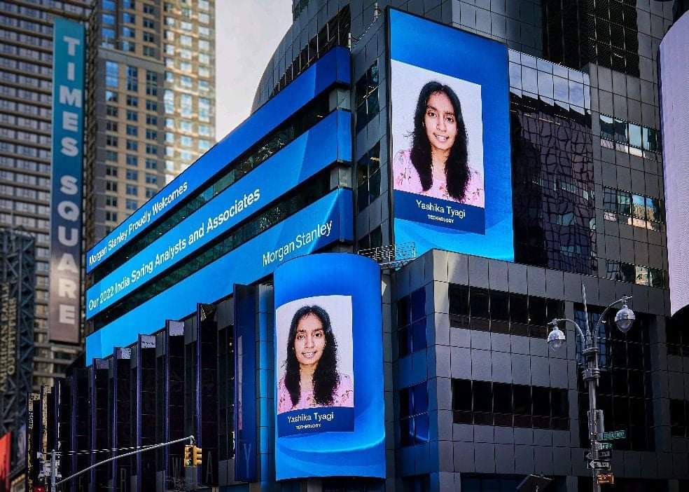 Sharing the news through a tweet, IET informed, “Our two final year B.Tech students Anshika Yadav & Yashika Tyagi won prestigious Morgan Stanley internship and are welcomed by placing billboards at Times Square New York City.”