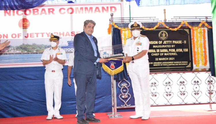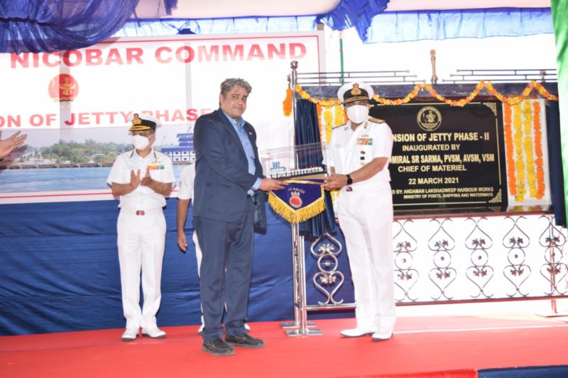 A major Naval project of ‘Extension of Jetty’ at the Naval Wharf was inaugurated by Vice Admiral SR Sarma, Chief of Materiel of Indian Navy, on 22 March 2021. Rear Admiral Suraj Berry, Chief of Staff, HQ Andaman and Nicobar Command and Shri TN Krishnamoorthy, Chief Engineer, Andaman & Lakshadweep Harbour Works were present for the event.