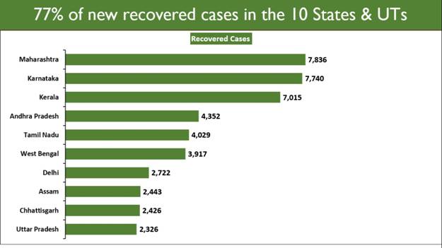 Maharashtra, Karnataka and Kerala contribute more than 7,000 to the single day recoveries.