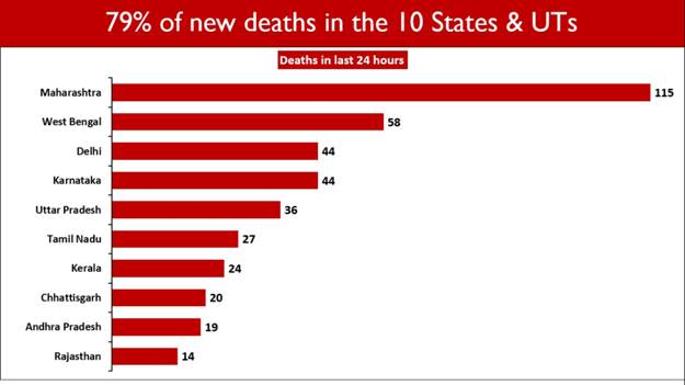 Maharashtra has contributed the maximum to the new fatalities with 115 deaths.