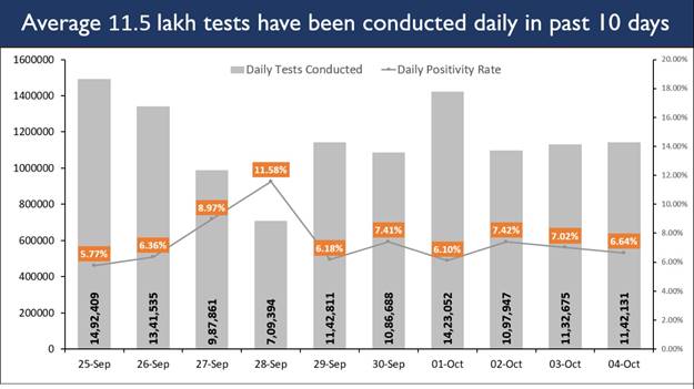 An average of 11.5 lakh tests were done on a daily basis during the past ten days.
