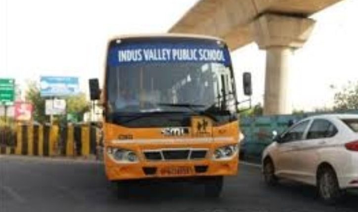 Greater Noida (5/3/2019) : Today, a school bus of Indus Valley School caught fire when the bus was on the way to drop school students. The incident took place when the school bus reached near sector 119 under police station of Phase III.