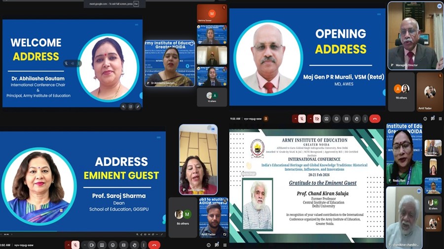 Greater Noida News (23/02/2026): The Army Institute of Education, Greater Noida, marked its Foundation Day by organizing a two-day international conference in hybrid mode on February 20 and 21. The conference, themed “India’s Educational Heritage and Global Knowledge Traditions: Historical Interactions, Influences, and Innovations,” brought together academicians, researchers, and education experts from India and several other countries, fostering vibrant academic exchange and dialogue.
