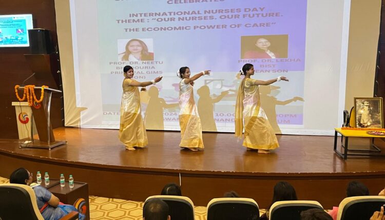 As the main guest of honor for the event, Dr. Neetu Bhadauria, Principal of Government Institute of Medical Sciences (GIMS), Greater Noida, Uttar Pradesh, graced the occasion. The program commenced with a ceremonial lighting and Saraswati Vandana, followed by the presentation of a memento and souvenir to Dr. Neetu Bhadauria, our esteemed chief guest. Subsequently, a felicitation ceremony was organized for the nursing community, showcasing their talents through dance performances, debates, quiz competitions, and rangoli displays. The significance of the nursing profession and its commitment to enhancing holistic healthcare was highlighted.