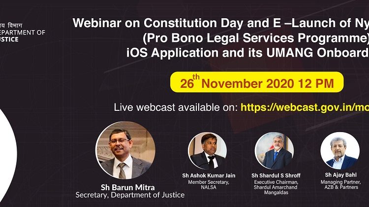 The webcast of the event will be available on https://webcast.gov.in/molj/doj/at 12 pm on 26th November,2020.