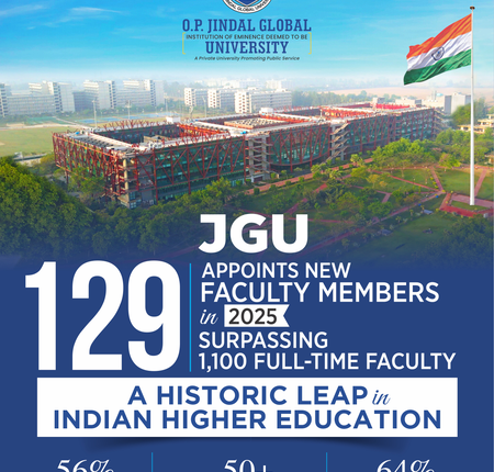 While commenting on the recruitment of new faculty members, Professor (Dr) C. Raj Kumar, Founding Vice Chancellor, O.P. Jindal Global University, said, “The induction of 129 new faculty members in 2025, taking our total strength beyond 1,100, is not just a milestone for JGU — it is a moment of historic transformation for Indian higher education. Sixteen years ago, we began with 10 faculty members and a dream: to reimagine the idea of a university in India. Today, that dream has become a living reality, sustained by an extraordinary community of scholars, teachers, and practitioners drawn from across India and around the world. This unprecedented growth is not about numbers alone — it reflects our deep and unwavering commitment to excellence, to diversity, to global engagement, and to creating a truly inclusive space for knowledge creation. With this new chapter, JGU reaffirms its role as a global university with a strong Indian identity — dedicated to nurturing leaders, advancing research, and building a more just, sustainable, and equitable world.”