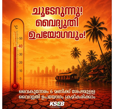The KSEB has urged consumers to reduce usage during peak hours, advising against evening use of high-load appliances such as air conditioners, water heaters, washing machines and EV chargers.